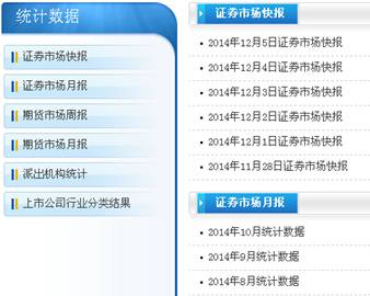 在“統計數據”欄目發(fā)布《證券市場(chǎng)快報》243期、《證券市場(chǎng)月報》12期、《上市公司行業(yè)分類(lèi)結果》4期、《期貨市場(chǎng)周報》52期、《期貨市場(chǎng)月報》12期。