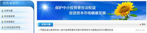 組織《國務(wù)院辦公廳關(guān)于進(jìn)一步加強資本市場(chǎng)中小投資者合法權益保護工作的通知》(國辦發(fā)〔2013110號)文件的宣傳解讀工作,積極宣傳、傳遞和深度解讀國務(wù)院高度重視中小投資者權益保護的政策信號。推出“滬港通投資者保護”頻道,發(fā)布滬港通各項政策法規,展示會(huì )系統各單位開(kāi)展滬港通培訓、調查情況,解答滬港通投資者訴求提出渠道、方式及流程等相關(guān)問(wèn)題。重點(diǎn)關(guān)注20多家網(wǎng)站財經(jīng)、證券、股票頻道信息,以及10多家網(wǎng)站股民社區論壇信息,匯集整理“12386”熱線(xiàn)和系統多家單位投資者互動(dòng)平臺信息,密切跟蹤投資者輿情動(dòng)向,了解投資者關(guān)注熱點(diǎn)。