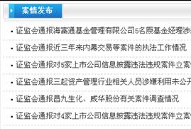 在“政策法規”欄目公開(kāi)或更新相關(guān)證券期貨法律法規31件。在“稽查執法”欄目發(fā)布證券期貨市場(chǎng)違法違規案件查處情況12期,發(fā)布證監會(huì )與公安機關(guān)加強執法合作工作的最新進(jìn)展情況、對市場(chǎng)操縱、利用未公開(kāi)信息交易等6項稽查執法工作動(dòng)態(tài)。在“行政處罰委”欄目發(fā)布行政處罰決定書(shū)92件、市場(chǎng)禁入決定書(shū)15件。在“行政復議”欄目發(fā)布行政復議決定67件。