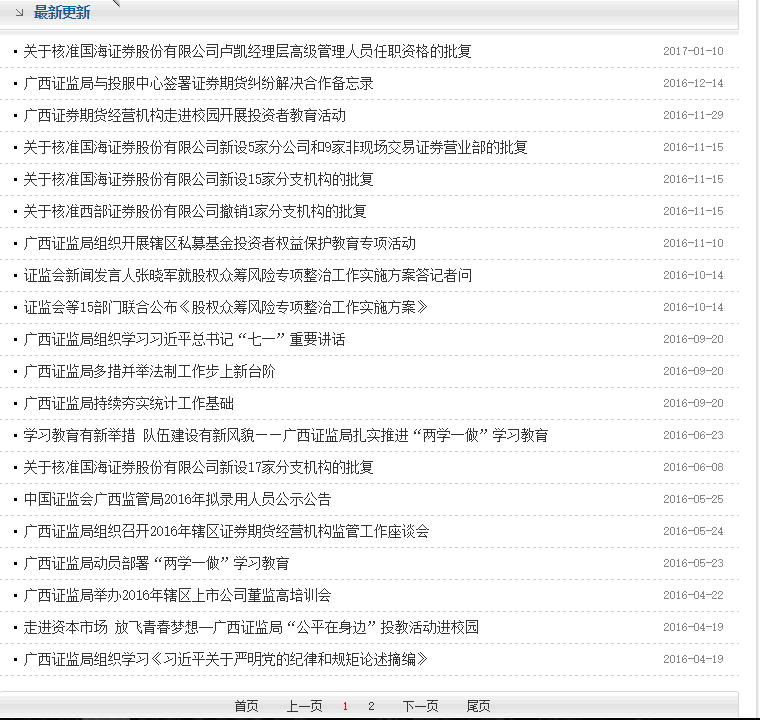 圖1 廣西證監局官方網(wǎng)站截圖